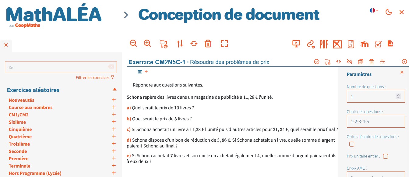 En quête d’un outil efficace pour créer des exercices de mathématiques adaptés à vos classes ? MathALÉA, une plateforme libre et gratuite, développée par des enseignants de l’association CoopMaths qui permet de générer des documents d’exercices en quelques clics, tout en offrant des possibilités de personnalisation et d’automatisation. Plus de 1000 exercices, classés par niveau et aisément paramétrables !